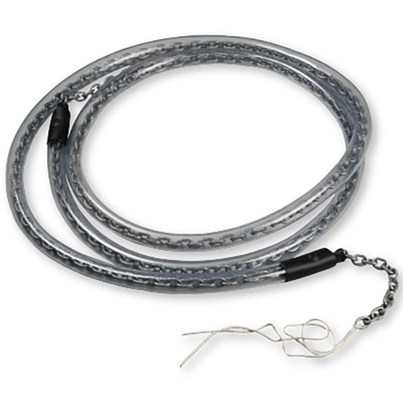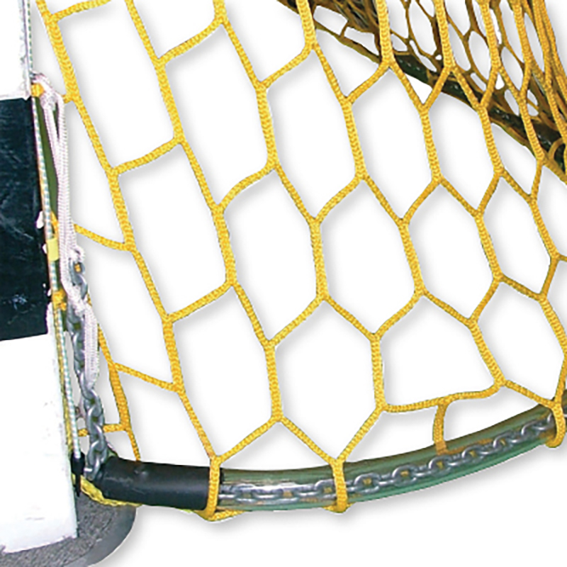 Die Kettenbeschwerung ist eine einfache und preiswerte Variante, um die Tornetze sicher am Boden zu halten. Die Kunststoff ummantelte Kette ist einerseits wetterfest, aber auch schonend für den Untergrund. An den Enden der Kettenbeschwerung ist ein Teil der Kette ohne Ummantelung und ein Stück Seil zum Anbinden an die Netzhaken oder den Torpfosten. Die Beschwerung ist für Grossfeldtore 7,32 x 2,44 m geeignet.