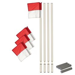 Das Set aus Eckfahnen, Kipp-Grenzstangen und Bodenhülsen bietet eine komplette Lösung für die professionelle Markierung von Fussballplätzen. Die reissfesten Eckfahnen aus 100 % Polyester sorgen für eine sehr gut sichtbare Spielfeldkennzeichnung. Die robusten Grenzstangen mit integriertem Kippelement minimieren das Verletzungsrisiko der Spieler, da sie bei Kontakt nachgeben. Ergänzt wird das Set durch die passenden Bodenhülsen aus Kunststoff, die im Rasen eingebaut werden und für einen stabilen sowie wettergeschützten Stand sorgen. Damit ist das Set praktisch und bestens geeignet für Vereine und Sportanlagen.