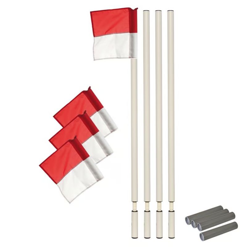 Das Set aus Eckfahnen, Kipp-Grenzstangen und Bodenhülsen bietet eine komplette Lösung für die professionelle Markierung von Fussballplätzen. Die reissfesten Eckfahnen aus 100 % Polyester sorgen für eine sehr gut sichtbare Spielfeldkennzeichnung. Die robusten Grenzstangen mit integriertem Kippelement minimieren das Verletzungsrisiko der Spieler, da sie bei Kontakt nachgeben. Ergänzt wird das Set durch die passenden Bodenhülsen aus Kunststoff, die im Rasen eingebaut werden und für einen stabilen sowie wettergeschützten Stand sorgen. Damit ist das Set praktisch und bestens geeignet für Vereine und Sportanlagen.