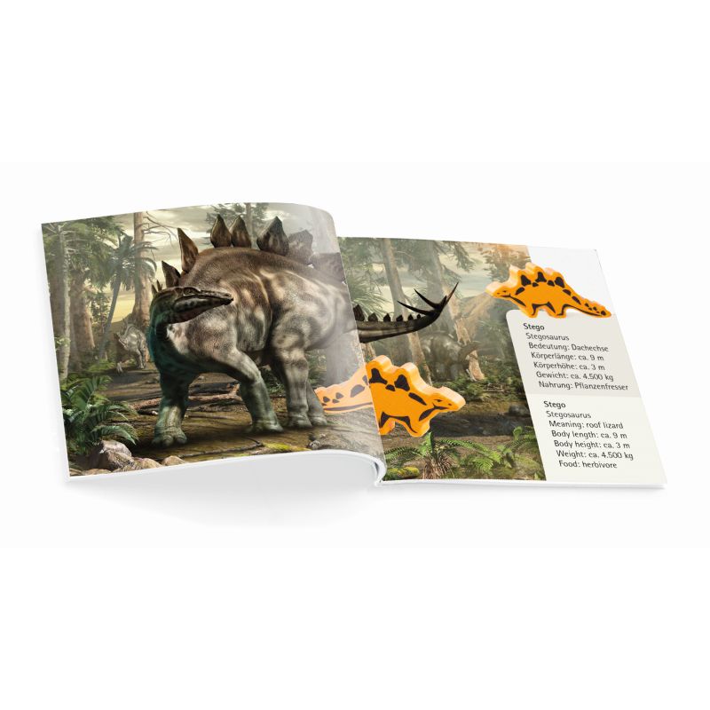 - 5 verschiedene Dinosaurier und 3 Pflanzen aus Buchenholz (Baum 11 cm) und eine 16-seitige Anleitung mit Informationen zu den einzelnen Dinosauriern und Pflanzen