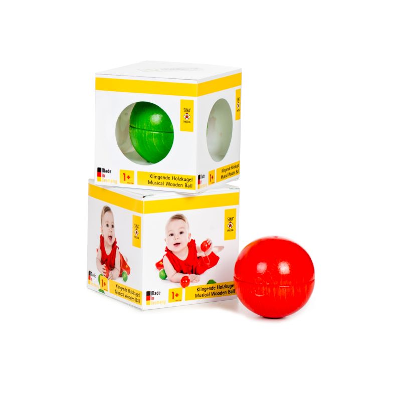 Durch das Schütteln und Kullern der Kugel wird ein Klang erzeugt, der die Sinne stimuliert und die auditive Wahrnehmung fördert. Der Kugel ist so gestaltet, dass bereits Babys im 1. Lebensjahr diese mit ihren Händchen festhalten, umspannen und begreifen können. Gleichzeitig wird Mobilität, Bewegung und grobmotorische Koordination unterstützt. Kinder krabbeln der Kugel gern hinterher und rollen die Kugel weiter. Förderung der Kommunikation zwischen Eltern und Kindern durch das Anregen zur Aufmerksamkeit, wie zum Beispiel: „Horch mal…“, „Schau mal genau hin…“.