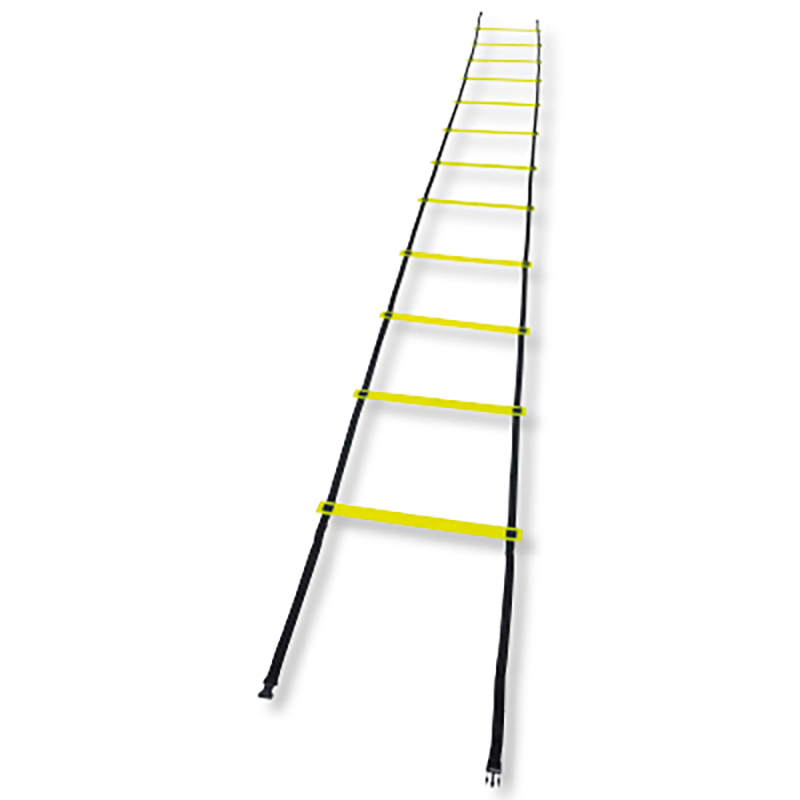Die Koordinationsleiter besteht aus zwölf bruchfesten Kunststoff-Sprossen, die mit strapazierfähigen Gurtbändern verbunden sind. Die Abstände der Sprossen können Sie variabel einstellen. Die Koordinationsleiter ist 6 m lang und ca. 50 cm breit. Ein Tragegriff und eine praktische Aufbewahrungstasche sind in der Lieferung enthalten.