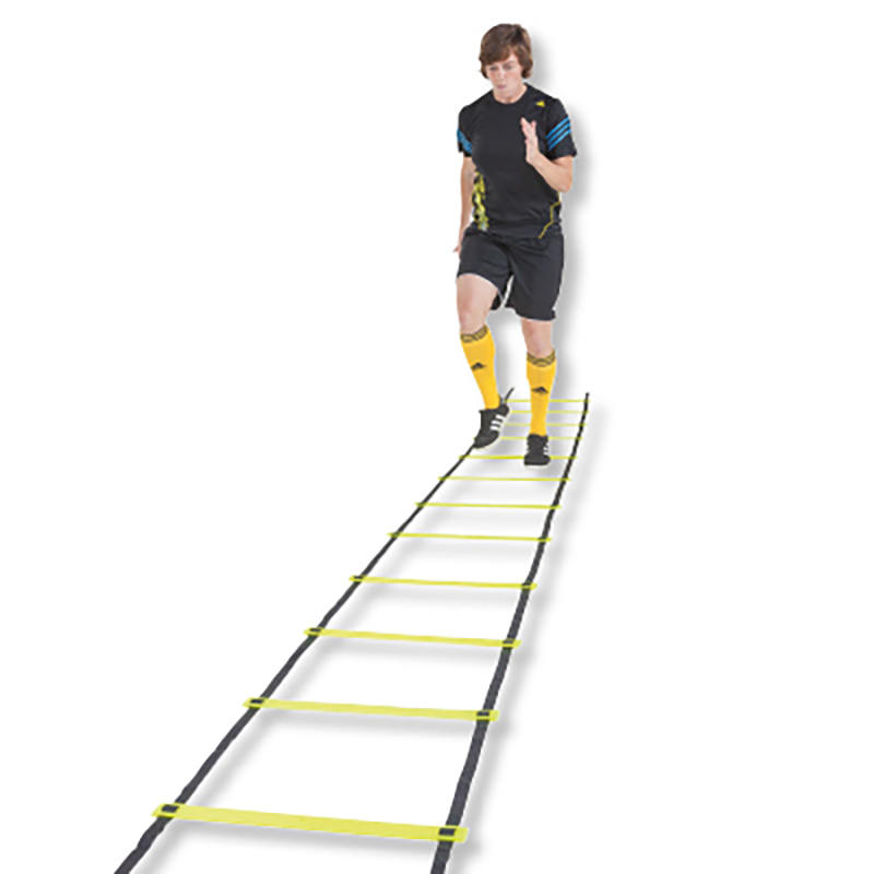 Die Koordinationsleiter ist ein elementares Instrument um die Koordination und die Schnelligkeit zu trainieren. Sie findet Ihren Einsatz daher in den Trainingseinheiten der Ballsportarten wie Fussball, Volleyball, Handball und Basketball, aber auch im Tennis-, Badminton- und Leichtathletiktraining ist sie wichtiger Helfer, um die Grundschnelligkeit und die Auge-Fuss/Bein-Koordination zu schulen. Die Anzahl der verschiedenen Übungen und Schrittfolgen, die man mit der Koordinationsleiter durchführen kann, ist quasi unendlich: Die Schrittfolgen können variieren, das Training kann mit und ohne Ball erfolgen, die Übungen können als Einzeltraining, als Partnerübungen oder als Staffelformen organisiert sein. Hinzu kommt, dass dieses Trainingsgerät nicht nur effektives Schnelligkeitstraining ermöglicht, sondern auch schnell und problemlos auf- und abgebaut ist und kaum Platz benötigt: Verstaut in der mitgelieferten Aufbewahrungstasche benötigt es nur ca. 15 x 15 x 50 cm.