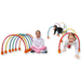 Ein Krabbelbogen besteht aus einem gepolsterten Bogen und 2 Sockel, welche beschwert sind. Somit stehen die Krabbelbögen aufrecht. Durch enge oder breite Positionierung bestimmen sie die Höhe bzw. Tiefe des Bogens.