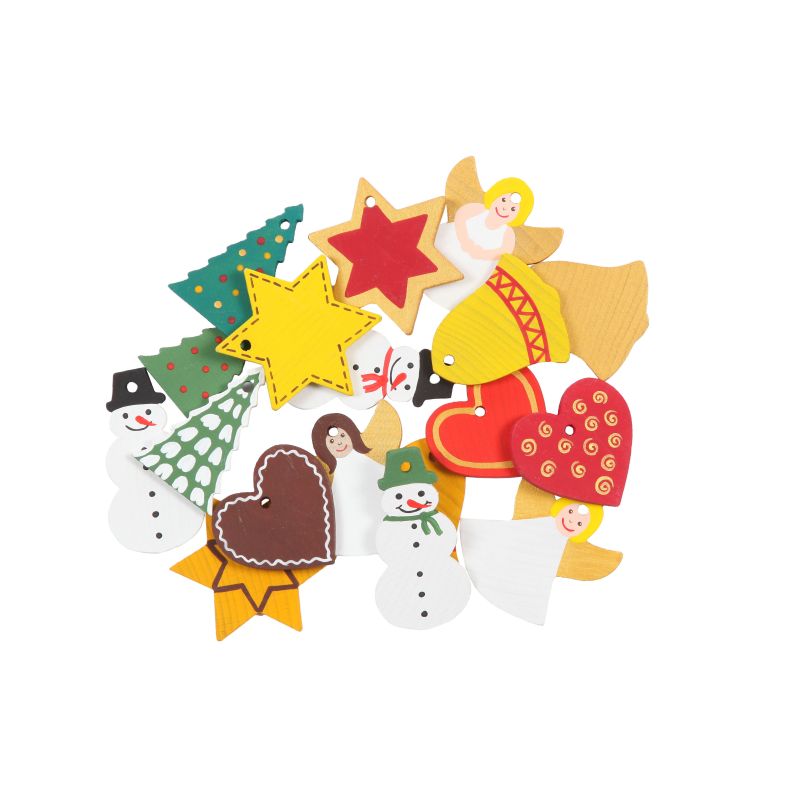 - 18 Anhänger aus Buchenholz zum Thema Weihnachten