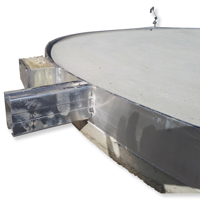 Aluminiumring mit eingegossener Betonplatte. Inkl. 4 Ösenschrauben für den Transport. Nach WA Anforderungen. Ø 2,135 m. Behindertengerecht für rollstuhlgerechten Einsatz.