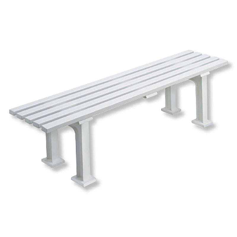 Die Kunststoffsitzbänke ohne Lehne werden gerne auf Tennisplätzen eingesetzt. Die Sitzbank ist aus robustem Kunststoff gefertigt und besitzt 2 (bzw. 3 bei 200 cm Länge) Fuss-Paare aus Vollkunststoff, sowie 5 Latten aus Mehrkammerprofil. Da die Sitzbank keine Lehne hat, kann sie beidseitig verwendet werden. Die Kunststoffsitzbank ist wetterfest, von hoher Qualität und hat einen hohen Sitzkomfort.