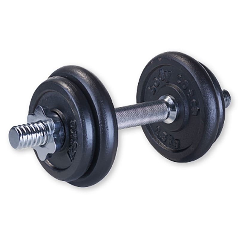 Kurzhanteln sind als Gewichte im Fitness- und Krafttraining absolut unverzichtbar: Die Sets mit einem Gesamtgewicht von 10 kg, 12,5 kg, 15 kg, 17,5 kg oder 20 kg sind aus massivem Gusseisen gefertigt. Dank der Sternverschlüsse lassen sich die Scheiben schnell und einfach austauschen und sicher befestigen. Die massive, verchromte Hantelstange ist im Griffbereich geriffelt, sodass selbst bei feuchten Handflächen ein sicherer Griff der Hanteln gewährleistet ist.