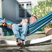 Die Hängematte besteht aus 100 % Polypropylen, ist schnelltrocknend und wetterfest und ideal für den Garten geeignet. Optik und Liegekomfort ähneln Baumwolle für ein angenehmes Hautgefühl. Verstärkte Webkanten und die Vielzahl an Aufhängeschnüren sorgen für eine hohe Reissfestigkeit und Langlebigkeit. Die Hängematte kann im Schonwaschgang in der Waschmaschine gereinigt werden.