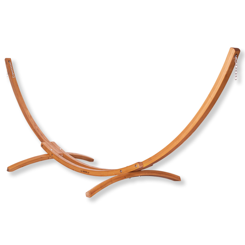 Mit dem wetterbeständigen Hängemattengestell Maera setzt du den passenden Rahmen für die wertvollsten Momente im Garten. Mit einer eleganten Form und natürlichem Eukalyptusholz wird das Gestell zum wahren Hingucker. Eukalyptus ist eine robuste und pflegeleichte Holzart, die sich ideal für Outdoor-Gestelle eignet, die den ganzen Sommer über im Garten stehen. Um neben hoher Qualität auch die Einhaltung strenger ökologischer und sozialer Kriterien zu garantieren, verwenden wir ausschliesslich FSC®-zertifiziertes Holz. Mit Hilfe eines patentierten Befestigungssystem lässt sich die Hängematte in nur wenigen Handgriffen auf die optimale Länge und Höhe bringen.