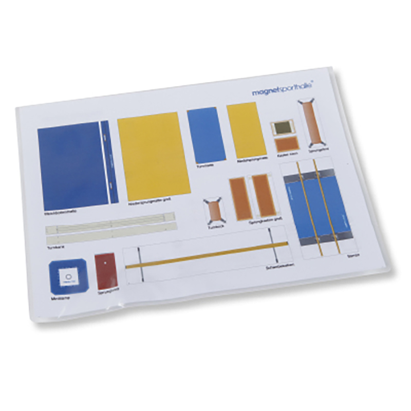 Die Magnetsporthalle hilft, geplante Geräteaufbauten schnell und verständlich zu vermitteln und versetzt Schüler in die Lage diese selbstständig umzusetzen. Jedem Set ist eine laminierte Legende beigefügt. Set A: Basiselemente: Turnbänke, Weichböden, Sprungkästen, etc. Set B: Erweiterungselemente: Hochsprungständer, Hochsprunganlage, etc. Lieferung ohne Magnettafel, bitte separat bestellen.