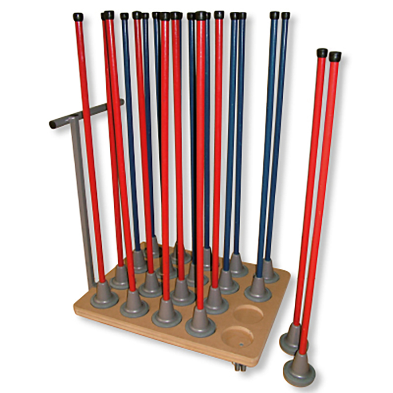 Aus Holz, mit einem Gusseisenfuss und einer Gummigalosche, ideal für den Einsatz in der Halle. Die Gummigalosche und die Gummikappe bestehen aus nichtfärbendem Gummi.
