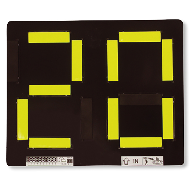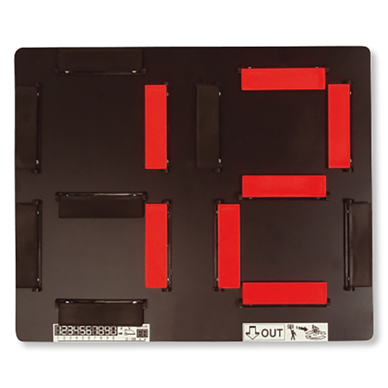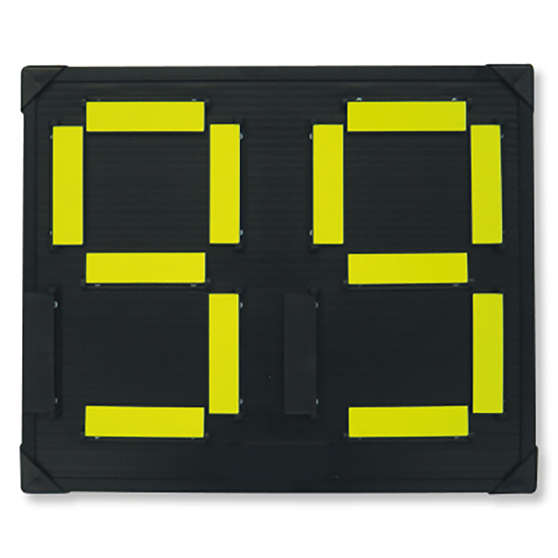Die manuell bedienbare Tafel “Handy“ kann vielseitig zum Anzeigen von Nachspielzeit, Spielstand, Auszeiten oder Ein- und Auswechslungen eingesetzt werden. Bedient wird sie durch schnelles, einfaches Umklappen der Farbplättchen, die mit Scharnieren auf der Tafel befestigt sind. Die Tafel kann auf beiden Seiten die Ziffern 0-99 anzeigen, z.B. in neon-rot die Auswechslung und in neon-gelb die Einwechselung. Durch diese manuelle, praktische Alternative zur elektronischen Anzeigetafel haben auch kleinere Vereine die Möglichkeit Spielstände oder Spielerwechsel anzuzeigen.