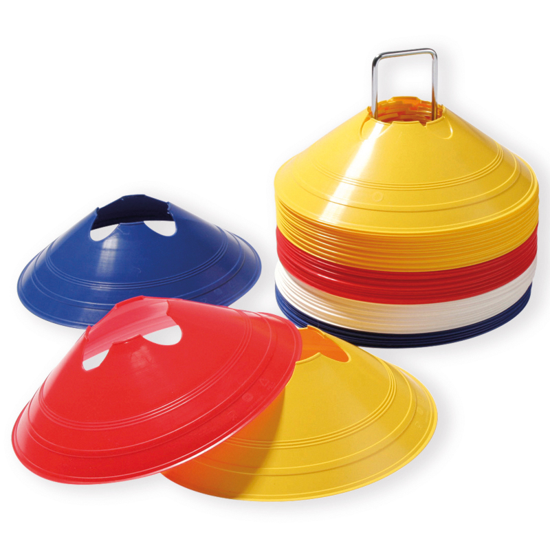 Die strapazierfähigen Markierscheiben eignen sich für die tägliche Trainingsarbeit. Die Markierhauben haben einen Durchmesser von 19 cm und eine Höhe von 6 cm. Sie sind passend für die Auflage von Stangen. Das Set besteht aus 15 gelben, 15 roten, 10 weissen und 10 blauen Markierhütchen. Ein Transport- und Aufbewahrungsstab ist inklusive.