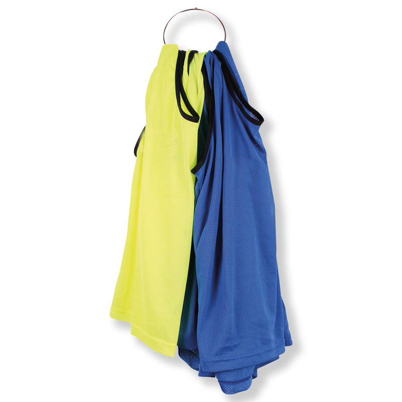 Das praktische Set beinhaltet 2 x 10 Markierungshemden in unterschiedlichen Farben zur schnellen Mannschaftseinteilung im Schulsport bzw. Teamsporttraining und einen Metallring für eine ordentliche Aufbewahrung und den komfortablen Transport.