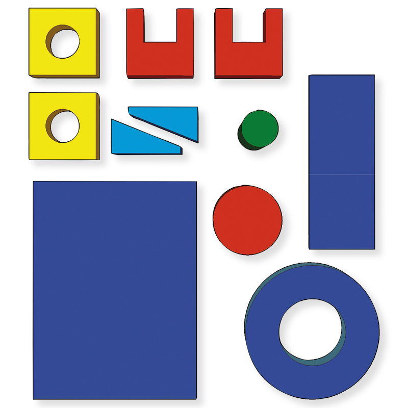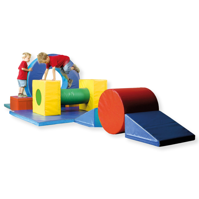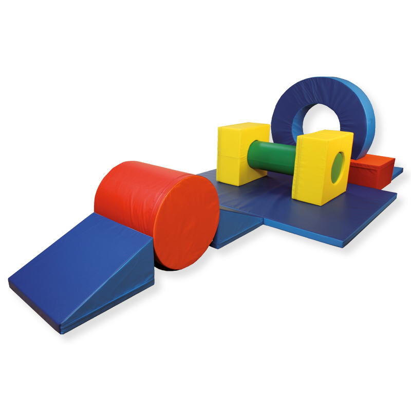 Überzüge aus Turnmattenstoff, strapazierfähig, reissfest, profiliert für hohe Rutschfestigkeit, hygienisch, abwaschbar, Einlagen aus festem elastischen Polyether-Schaumstoff, FCKW-frei.