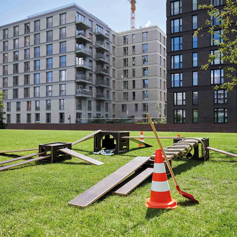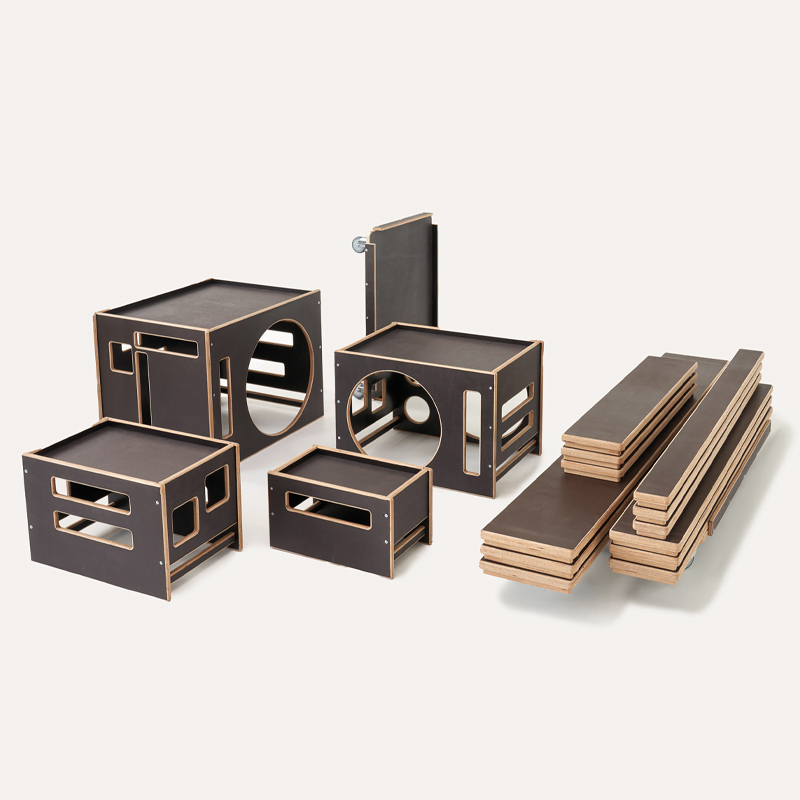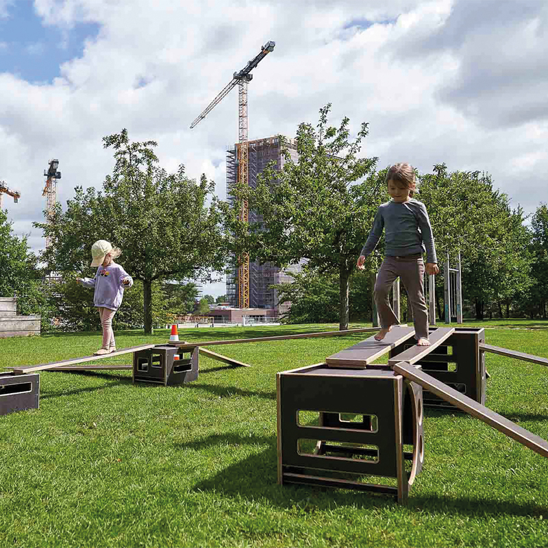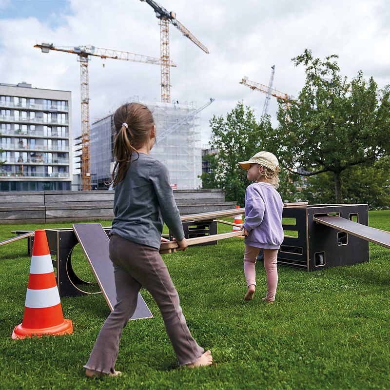 Die Bewegungsbaustelle für den Aussenbereich von Kitas und Grundschulen. Sie ist das Pendant der Bewegungsbaustelle FRITID (Art. P7781) die ausschliesslich im Innenbereich von Bildungsstätten eingesetzt wird. Im Kern besteht auch diese Baustelle aus verschieden grossen, ineinander stapelbaren Kisten und unterschiedlich langen und breiten Brettern sowie schmalen Stegen. Durch robuste Transportwagen ist alles stets mobil und kann im gesamten Kita Aussengelände genutzt werden.