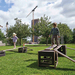 So werden Bretter und Vierkanthölzer als Auf- und Abgänge sowie als Verbindungselemente verwendet. Die Bildung von Rampen lädt zu pyhsikalischen Erkenntnissen ein, zugleich entstehen die in Hühnerleitern umfunktioniert werden. Wippen, Brücken, Stege und Pfade sind ebenfalls beliebte Anlässe die aus der Fantasie der Kinder und dem Miteinander entstehen.