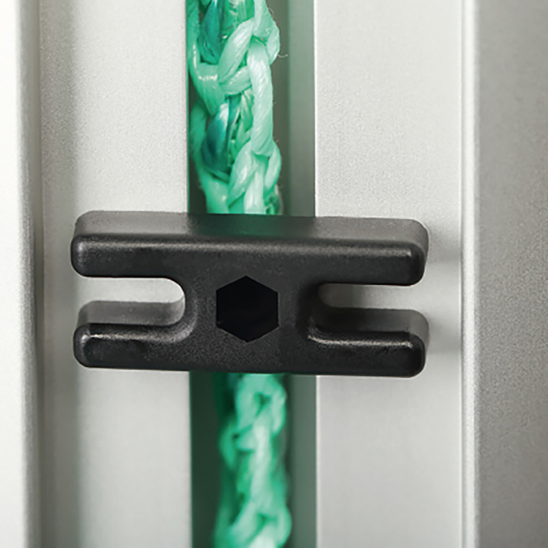 Netzhalter aus Kunststoff, hohe Stabilität und Lebensdauer. Einfach handhabung mit einem Innensechskantschlüssel. Geringes Verletzungsrisiko dank geringer Bauhöhe.