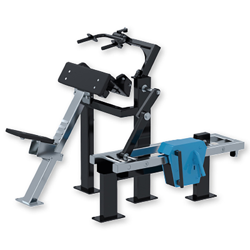 Die Gewichtsbelastung ist durch den verstellbaren Gewichtsschlitten zwischen 5-50 kg individuell regulierbar. Der Sitz ist stabil auf einem Schienensystem angebracht und lässt sich schnell in der Höhe verstellen.
