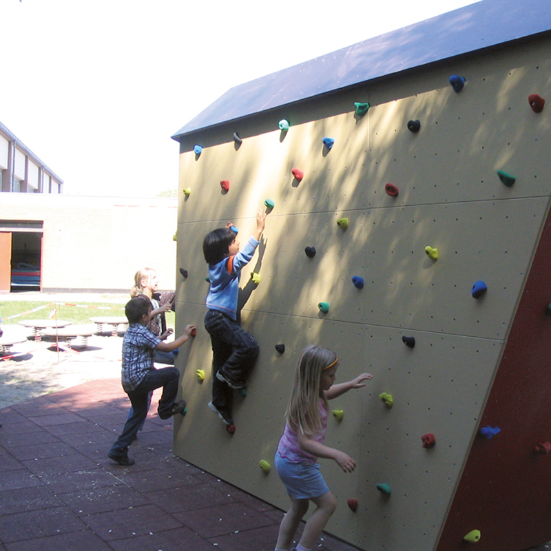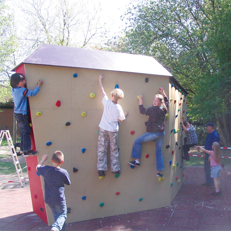 Grosse Outdoor Boulderanlage für Spiel,- und Pausenplätze, Kindergärten, Campingplätze, Schwimmbäder, Parks... mit hohem Aufforderungscharakter. Die Wand kann nahezu überall auf einem vorhandenen Fundament aufgestellt werden. Auf den wetterfesten und witterungsbeständigen Kletterpaneelen sind 5 Klettergriffe je m² Kletterfläche montiert und laden zum Klettern ein. Die Unterkonstruktion gewährt höchste Standsicherheit und wird auf einem bauseitigen Fundament verankert. Die Kletterwand verfügt über 33 m² senkrechte, geneigte sowie überhängende Kletterflächen.