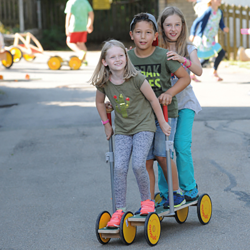 Das Pedalo Family ist ein ideales Sportgerät, um Kinder-Gruppen mit bis zu vier Personen gleichzeitig zu motivieren, sich zu bewegen und gemeinsam Spass zu erleben. Kinder lernen so spielerisch die Bewegung. Dank der zwei Festhaltestützen erfahren die Kinder von Anfang an Sicherheit und können so Vertrauen zum eigenen Körper aufbauen. Die wichtigsten Lernerfolge sind die spielerische Entwicklung von Motorik, Gleichgewichtsfähigkeit, Reaktionsfähigkeit, Bewegungsqualität und Haltungsqualität.