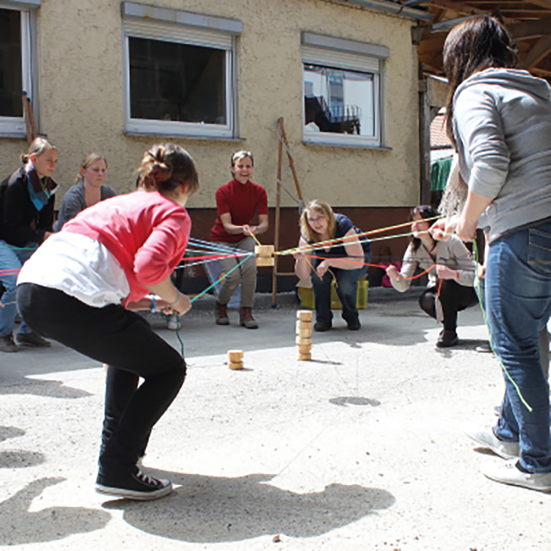 Pipeline bauen, Walzen stapeln und transportieren, Bälle führen, Knoten bilden und lösen, Seilmuster flechten, uvm. Spiele für Kinder, Erwachsene, Mannschaften und Firmen. Die Teilnehmer lernen dabei auf eindrucksvolle Weise effektive Kommunikation, Kooperation, aktives Zuhören, Balance herstellen sowie Verantwortung zu übernehmen. Wahlweise können zwischen 4 und 16 Teilnehmer in die einzelnen Aufgabenstellungen einbezogen werden.