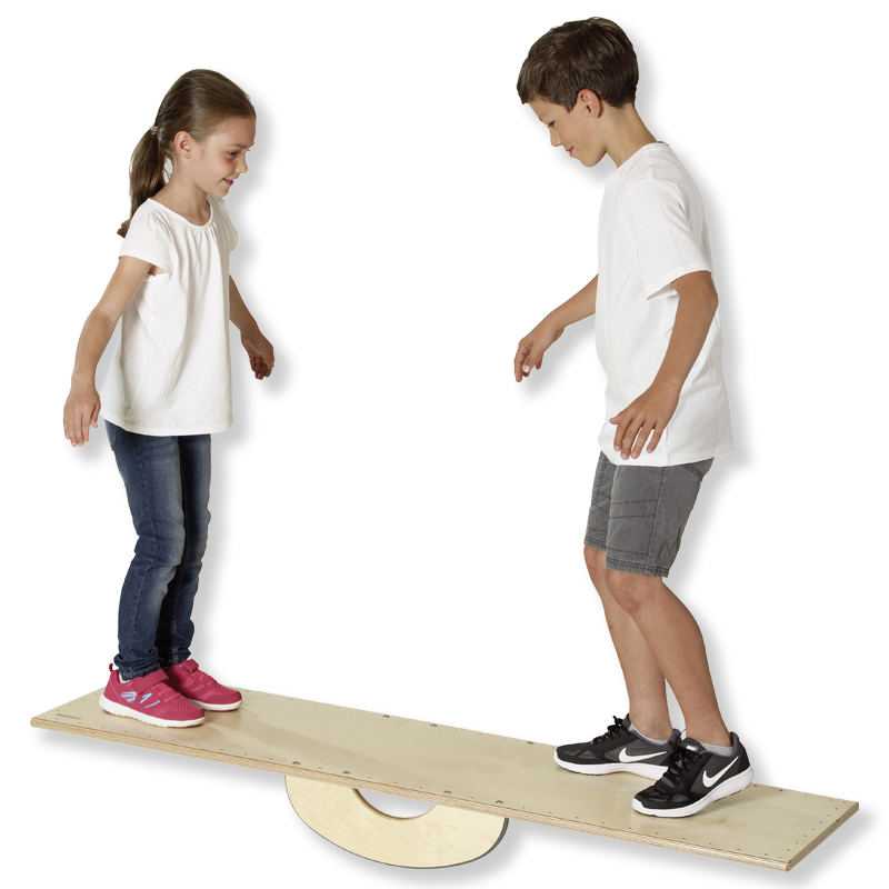 Dieses Balance Board ist eine wahre Bewegungsinsel und bietet gleich mehreren Kindern Platz sich darauf zu tummeln und ihr Gleichgewicht in spielerischer Form unter Beweis zu stellen. Die Besonderheit ist, dass die Kufen individuell an der Längs- oder Querseite angeschraubt werden können. Es entstehen völlig unterschiedliche Übungsmöglichkeiten auf dem Balance Board. Die Gummipuffer an den Brettenden sorgen für ein weiches Aufsetzen des Balancetrainers. Für den Einsatz in der Therapie oder im Seniorentraining bieten anschraubbare Festhaltestützen an der umlaufenden Rasterbohrung einen sicheren Stand für Übungen im Stehen. Für den speziellen Einsatz im Sportbereich z.B. bei Sprungübungen, sind Verstärkungsleisten anzubringen. Auch ist dieses pedalo®-Wippbrett 150 für liegende Entspannungs- und Gleichgewichtsübungen empfehlenswert.