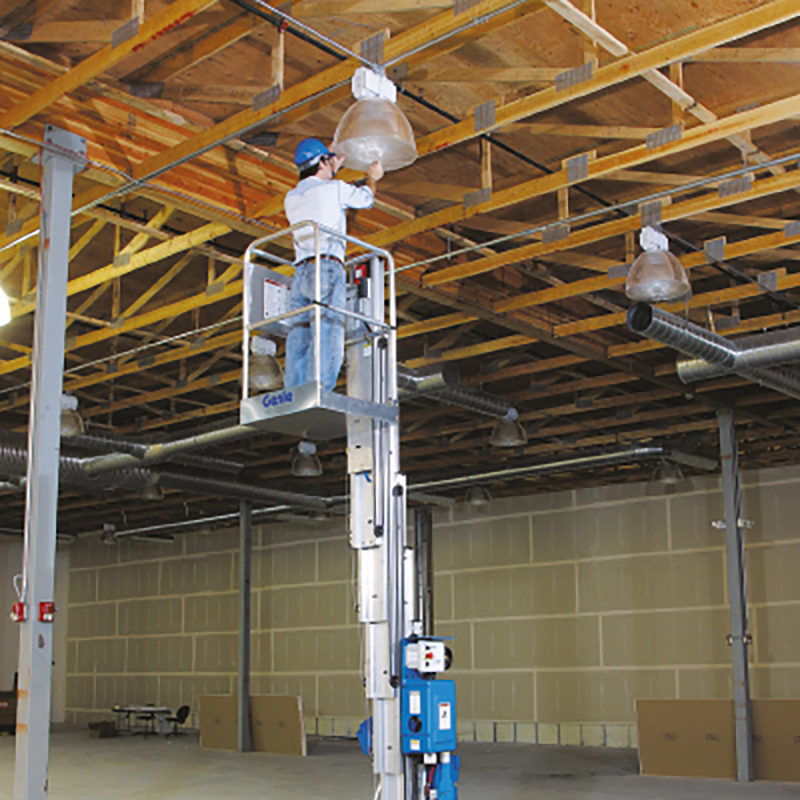 Geeignet für: Sporthallen, Schulen, Büros, Theater, Ausstellungen, Museen, Einkaufszentren. Für Arbeitshöhen 8.10 m, 9.50 m, 11 m 13.10 m, 14.30 m.