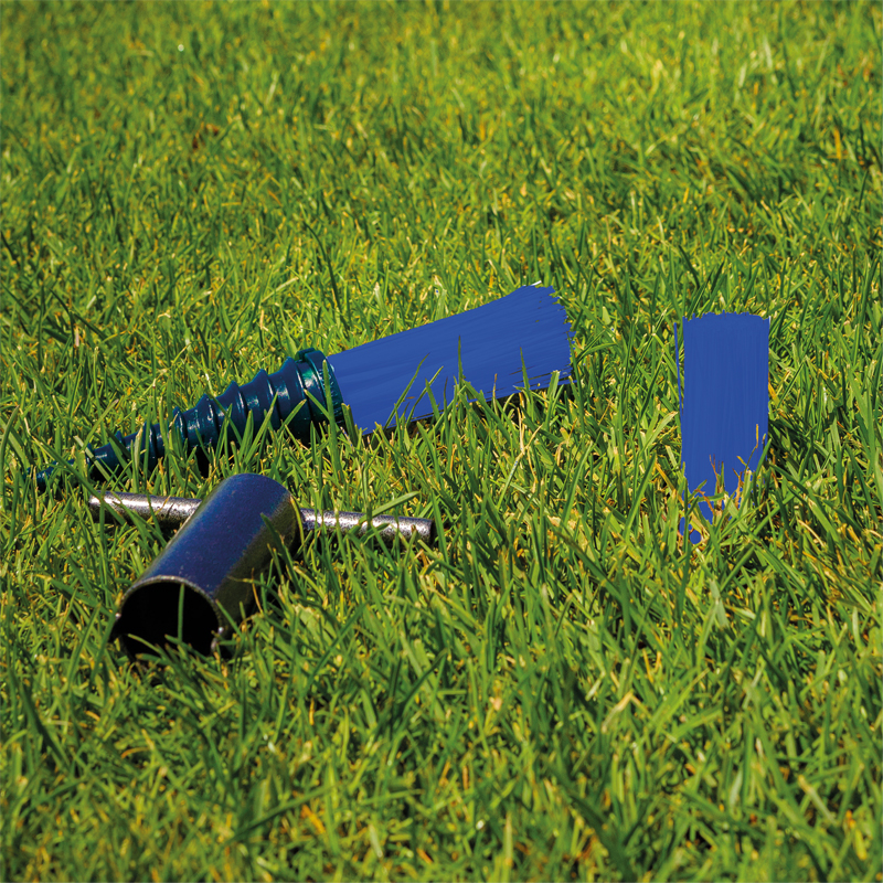 Gute Sportplatzmarkeriung, um das Trainingsfeld übersichtlich zu gestalten und den Trainingsablauf zu vereinfachen. Die Pitchmarker aus PVC werden mit einem Eindrehwerkzeug 10 cm tief in den Boden gedreht. Die 7 cm langen, robusten und synthetischen Anti-UV-Fasern der Pitchmarker, befinden sich dann ca. 3 cm über dem Rasen.