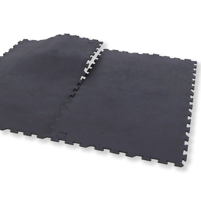 Massive Puzzle-Matte aus Naturkautschuk zur freien, schwimmenden Verlegung. Die extrem langlebigen, robusten und rutschfesten Matten besitzen eine geschlossene Oberfläche und sind einfach zu reinigen. Sie eignen sich für Fitnessstudios, etc. als Bodenbelag für Cardio- und Krafttrainingsgeräte. Die Oberfläche hat eine Tropfstruktur, die Unterseite ist glatt.