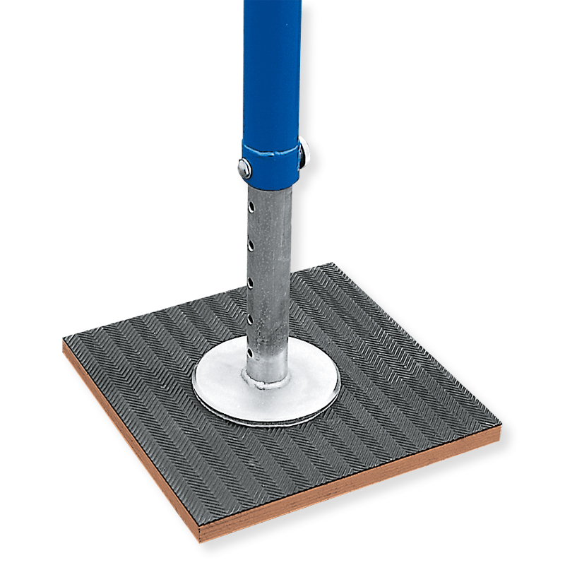 Als Zubehör erhältliche Druckverteilerplatten garantieren extrem hohe Standsicherheit auch auf punkt- und flächenelastischen Sporthallenböden. Reckstange aus massivem rostbeständigen Federstahl, die im Recksäulenkopf lagert.