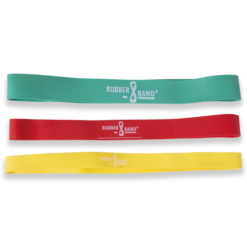 Das Fitnessband aus Kautschuk ist ein robustes und widerstandsfähiges Trainingsband. Gummibänder werden bei vielen Kräftigungs- und Dehnungsübungen im Bereich der Arme und Beine eingesetzt. Die Übungsbänder aus Gummi gibt es in unterschiedlichen Stärken und Ausführungen.