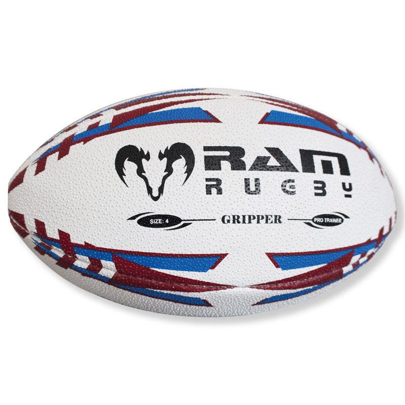 Ram Rugby-Ball dreilagige Ballausführung mit Gummibeschichtung, 3D Griffigkeit für die ideale Kontrolle beim Passen und Fangen, High-Tech Innenverkleidung, handgenäht.