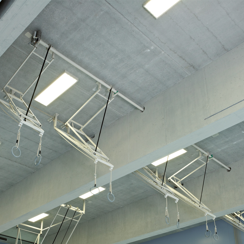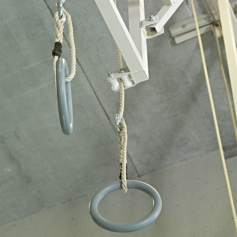 Schaukelringe an Seilen mit Einzelklapprahmen
