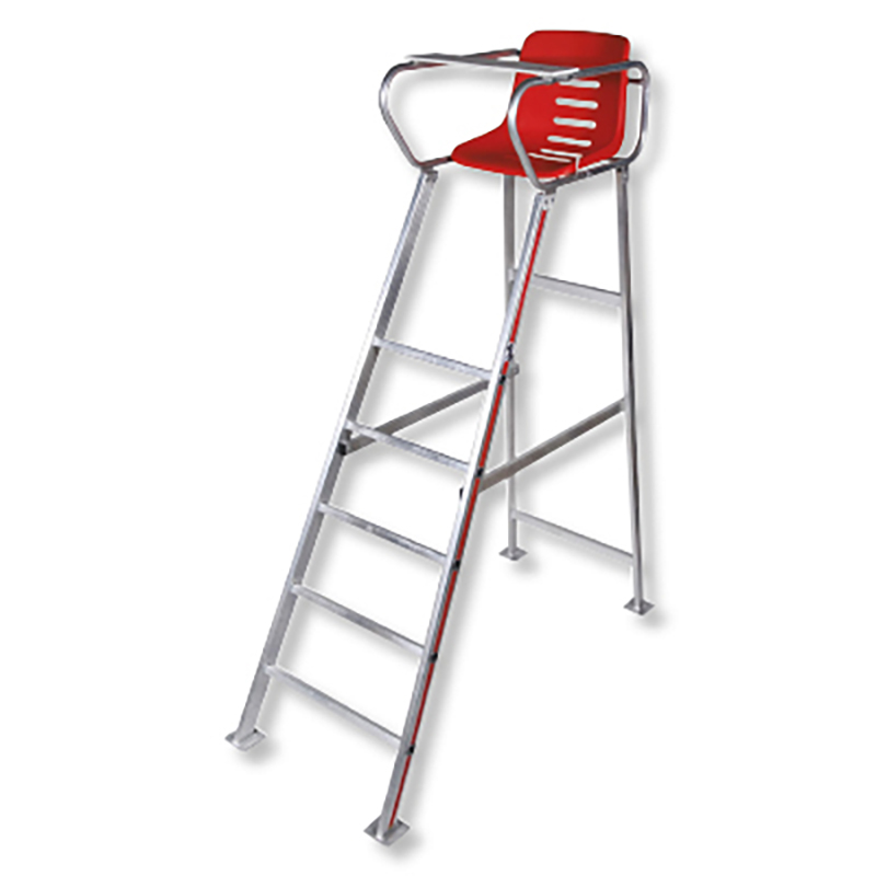 Construction robuste en aluminium. La chaise d'arbitre est extrêmement stable grâce à ses quatre plaques de base et à son échelle à échelons robuste. Siège baquet et tableau d'écriture en plastique résistant aux UV. Sans entretien et résistant aux intempéries. Hauteur environ 220 cm, hauteur d'assise environ 182 cm. Les coques de siège sont remplaçables (T1528-02).