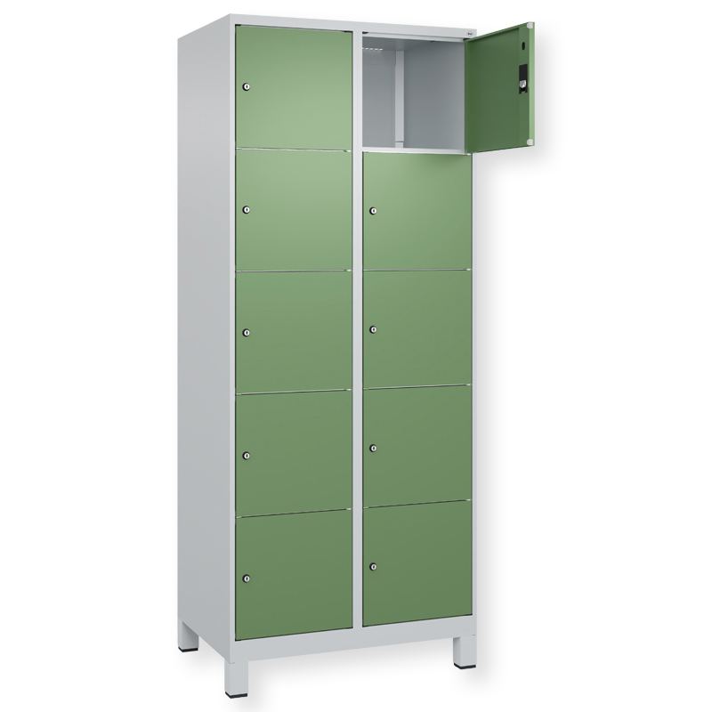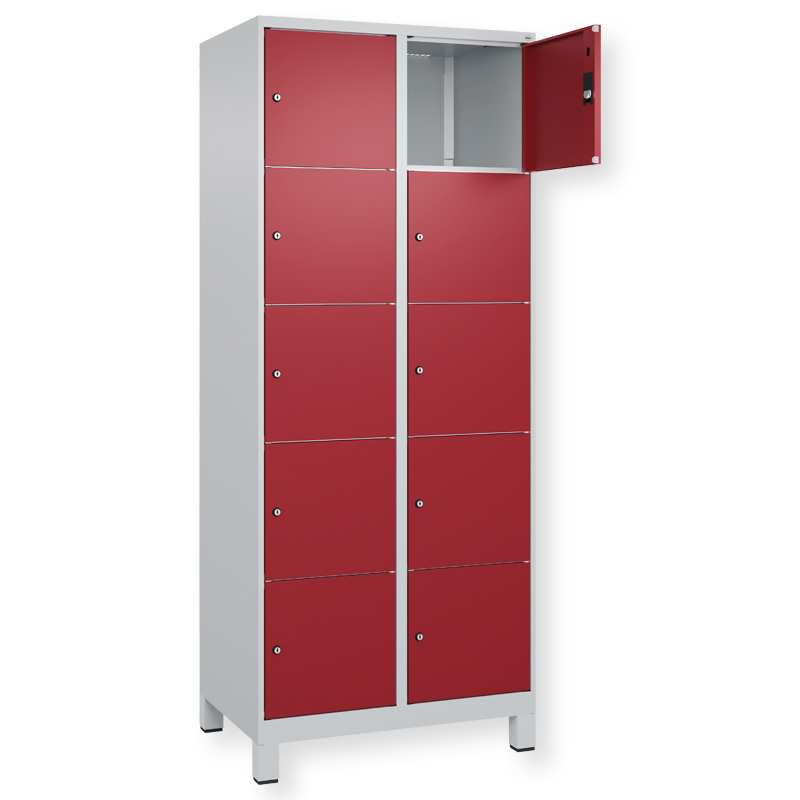 Schliessfachschrank Classic PLUS, 1 Abteil mit 5 Fächern, Abteilbreite 400 mm, Korpus aus stabiler Stahlkonstruktion mit hochwertiger Einbrennbeschichtung für hohe UV- und Korrosionsbeständigkeit, Türöffnungen 110 Grad, Türaufhängung rechts, Stahl-Türen mit Soft-Anschlag und geschlossenen Seitenprofilen für hohe Stabilität, Türaufhängung in stabilen Drehbolzen, 5 Zylinderschlösser mit 2 Schlüsseln, Schliesskreis bis 1000 verschiedene Schliessungen, 100 mm hohe Füsse aus Kunststoff für erweiterten Korrosionsschutz.