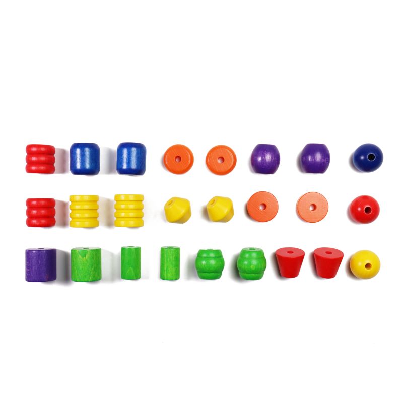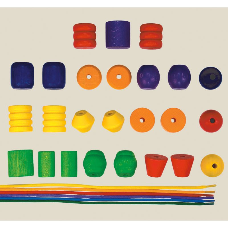 - Inhalt: 25 Schmuck-Holzperlen, 6 Schnüre