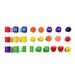Die bunte Mischung enthält Schmuck-Holzperlen zum Auffädeln im Durchmesser von 20 – 32 mm. Die Schnüre haben harte Enden. Die Holzperlen und Schnüre sind farblich genau aufeinander abgestimmt in den fröhlichen Farben des Regenbogens rot, orange, gelb, grün, blau, violett.