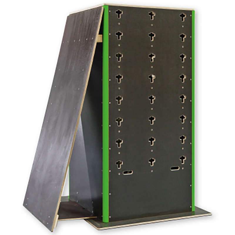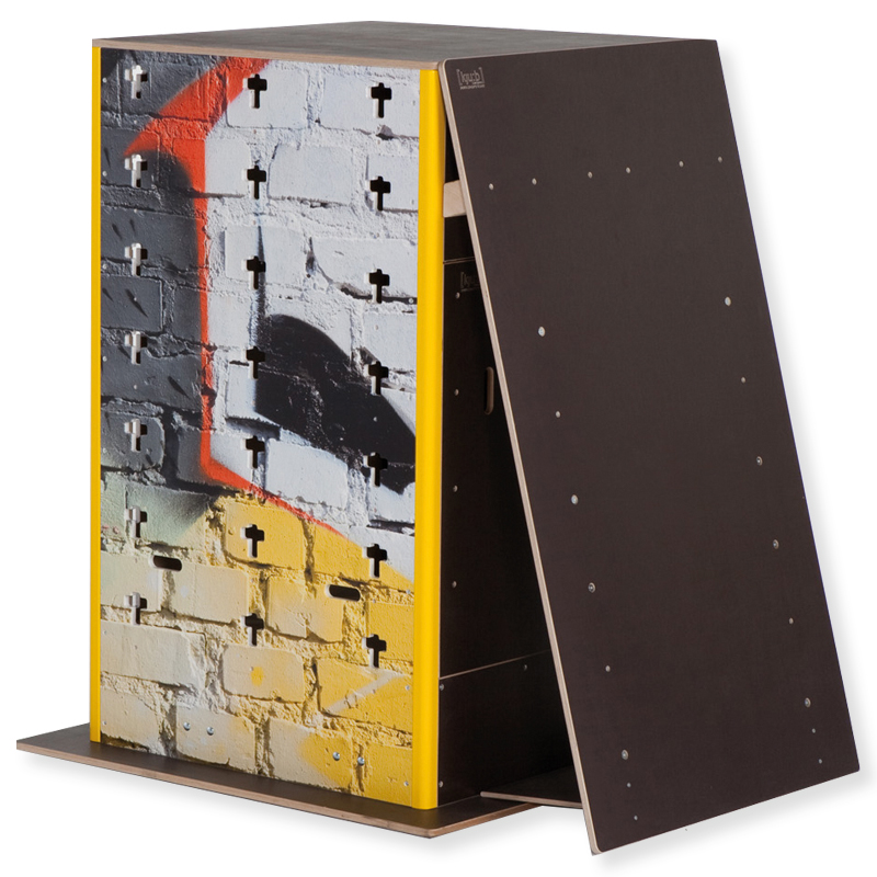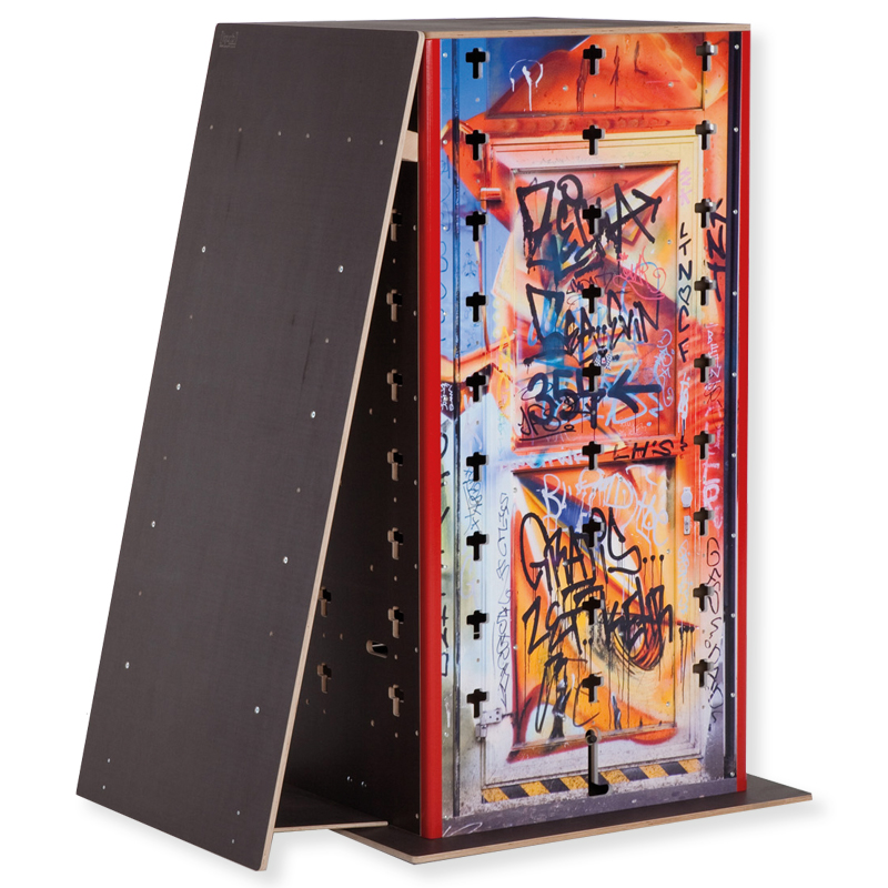 Die Schrägwand wird mit dem passenden Cube verbunden. So können sich auch Anfänger an Parkour Training und akrobatische Übungen wie Saltos herantasten.