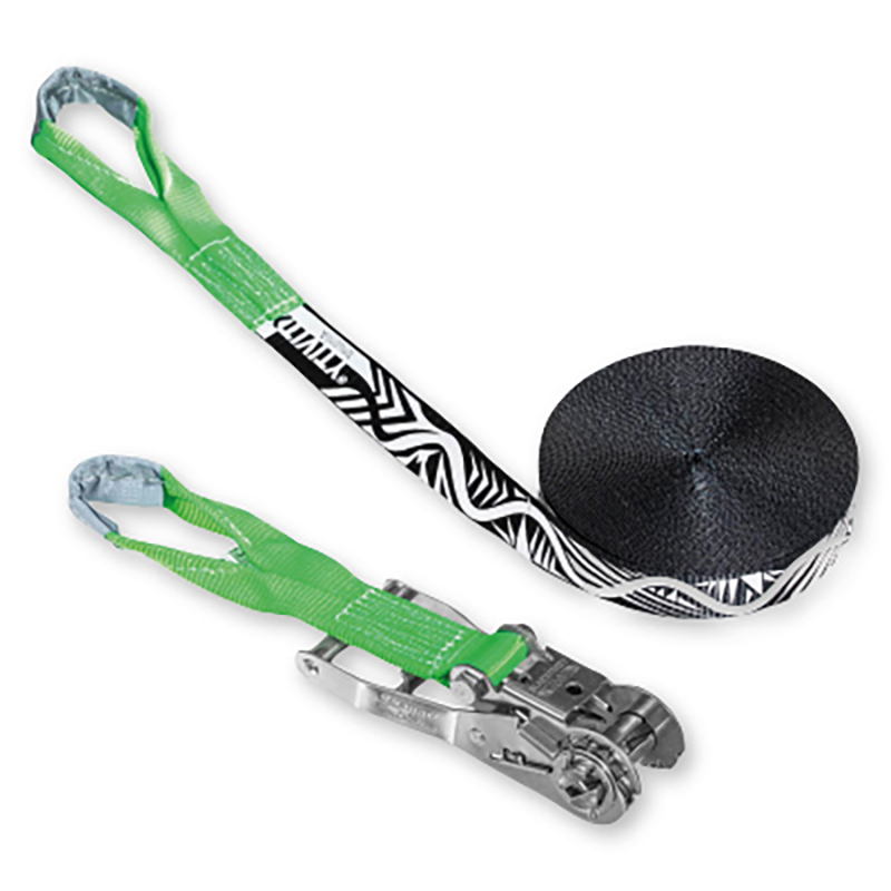 Durch die spezielle V-Loop (Hochkant-Naht) lässt sich die Slackline Allround-light auf einfachste und schnellste Weise an den Slackline-Pfosten montieren. Dieses System wurde ursprünglich für den Sportunterricht entwickelt und wird seit Jahren erfolgreich an vielen Schweizer Schulen eingesetzt. Lieferumfang: 15m Flachband (37 mm breit) mit eingenähter V-Loop Robuste Slackline-Ratsche aus rostfreiem Edelstahl mit eingenähter V-Loop