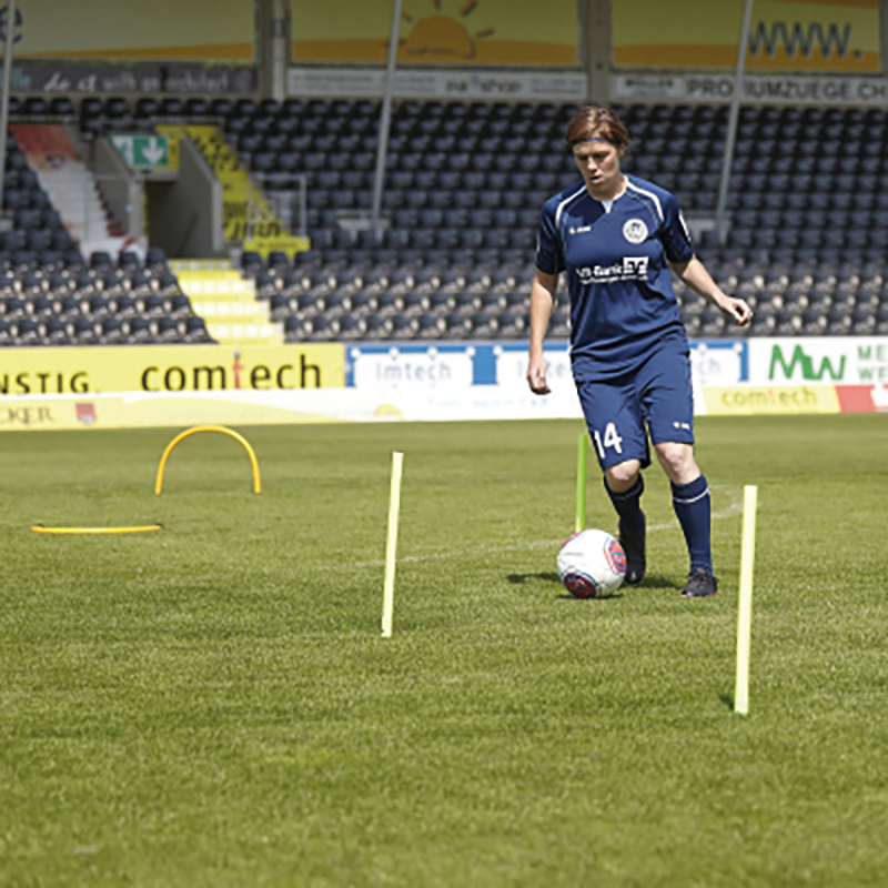 Die Slalomstangen aus flexiblem Gummi sind bestens für das Slalom-Training, als Spielfeldmarkierung oder als Tormarkierung geeignet. Durch die minimale Verletzungsgefahr kommen sie vor allem beim Training mit Kindern und im Schulsport zum Einsatz. Knicken die Stangen bei Ausführung der Übung ab nehmen sie anschliessend automatisch wieder die ursprüngliche Form an. Die Metallspitze ermöglicht ein problemloses Einstecken in den Boden und gewährleistet einen festen Halt.