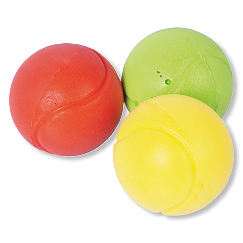 Drei gut springende Tennisbälle aus Schaumstoff in den attraktiven Farben, blau, gelb und rot. Die Bälle sind weich und für viele Wurf- und Rückschlagspiele geeignet und vor allem bei Kindern beliebt.