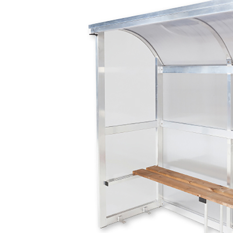 Solide Rahmenkonstruktion aus Alu-Spezialprofilen 80 x 40 mm. Seitenteile aus Acrylglasplatten, Rückwand und Dachplatten Polycarbonat-Hohlkammerplatten. Komplett mit Sitzbank aus Holz. Abmessungen: Höhe vorne 200 cm, hinten 165 cm, Tiefe oben 100 cm, unten 90 cm. Komplett mit allen erforderlichen Befestigungsmaterialien für Selbstmontage.>