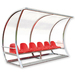Die Sport-Spielerkabine EXKLUSIV ist eine besonders formschöne, geschwungene und vollverschweisste Spielerkabine bzw. Auswechselbank. Die Rück- und Seitenwände sind aus bruchsicheren, absolut transparenten Polycarbonat-Scheiben. Die Kabine wird mit Kunststoff-Sitzen mit Rückenlehne ausgestattet. Hinter den Sitzen gibt es eine 30 cm breite Ablagemöglichkeit für Taschen oder Getränke. Die Spielerkabine Exklusiv kommt einschliesslich eines integrierten Aluminium-Fussrosts aus Riffelblech, das auf Wunsch mit einer Fussheizung (Mehrpreis) ausgerüstet werden kann. Die Tiefe beträgt ca. 1 m, die Höhe 1,8 m. Für die Bodenverankerung sind 4 Laschen angeschweisst. Die Spielerkabine ist in folgenden