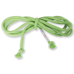 Die farbenfrohen Springseile bestehen aus einem Baumwoll-Mantel und einer Schwungeinlage aus Flachs. Durch das verstärkte Mittelstück lässt sich das Seil besser schwingen und man erhält allgemein ein stabileres Schwungverhältnis.