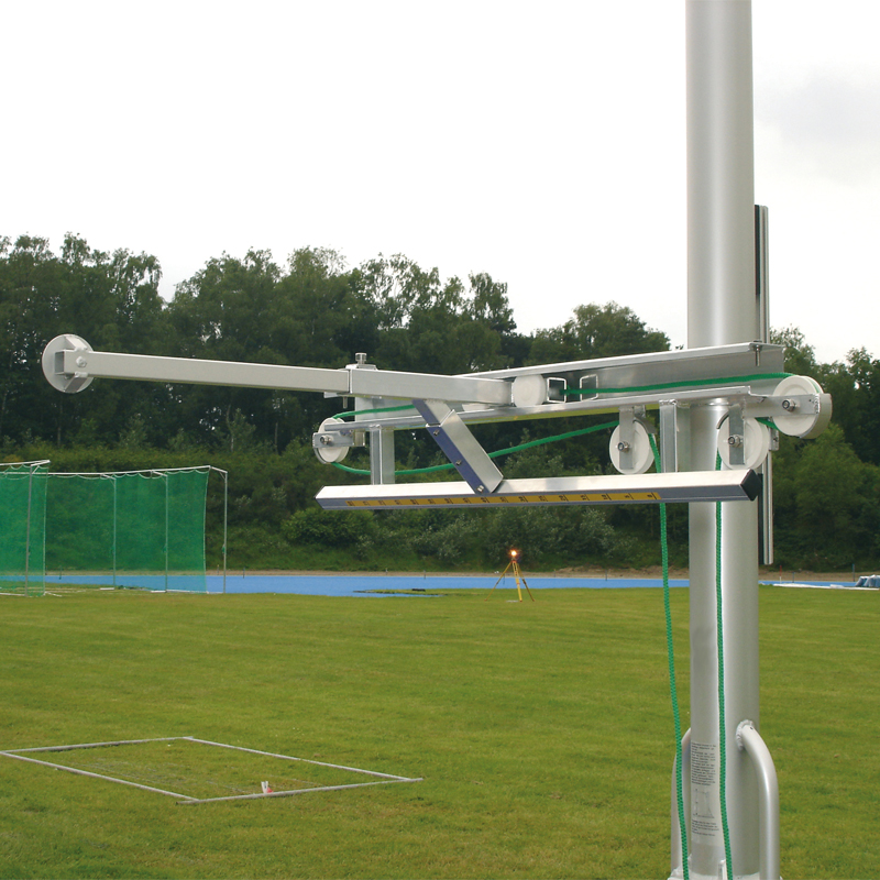 - Nach internationaler Vorschrift kann die Stabhochsprunglatte an der Lattenauflage von unten versetzt werden.