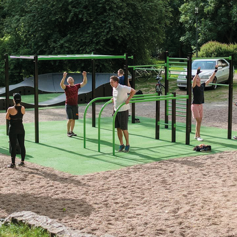 Die Street Workout Parks sind in unterschiedlicher Grösse und mit unterschiedlicher Ausstattung erhältlich. Sie eignen sich ideal für das Training mit dem eigenen Körpergewicht, ohne die Verwendung von weiterem Zubehör wie Hantelstangen oder Gewichte.