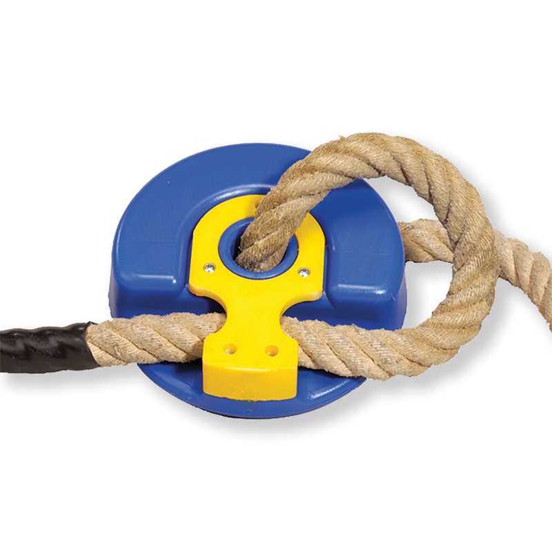 Der Swingtop Schaukelsitz ist der beliebte Schaukelteller für Klettertaue. Die Öffnung in der Mitte des SwingTop ist passgenau für alle genormten Taue. Einfach das Tauende durch die Öffnung führen, durch die gelbe Lasche fädeln und dann durch die entstandene Tauschlinge ziehen. Fertig ist ein sicherer Schaukelsitz! Durch das Gewicht des Schaukelnden zieht sich die Schlinge automatisch fest.