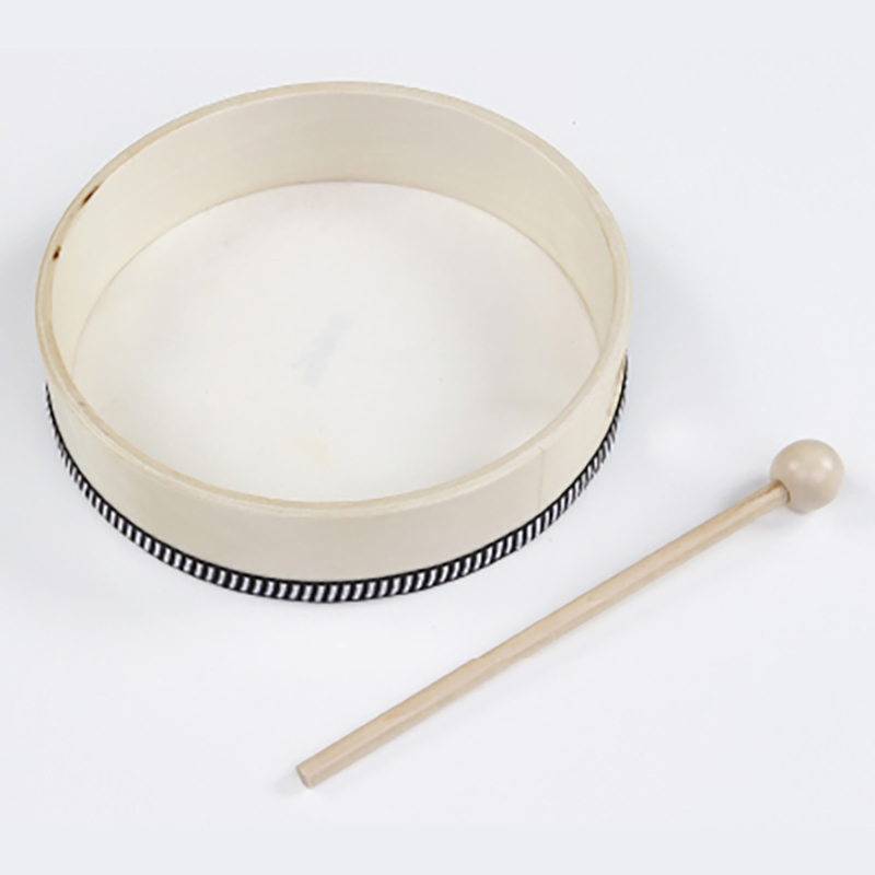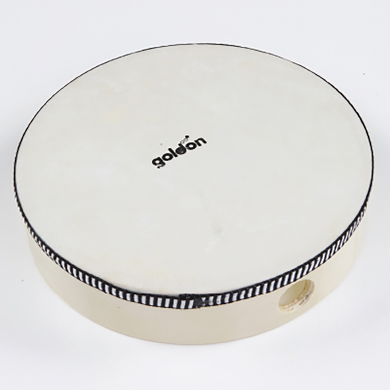 Tamburin hat einen Korpus aus Holz und einen Naturfellbezug. Ein Schlägel ist enthalten. Das Tamburin ist zwei verschiedenen Grössen erhältlich.